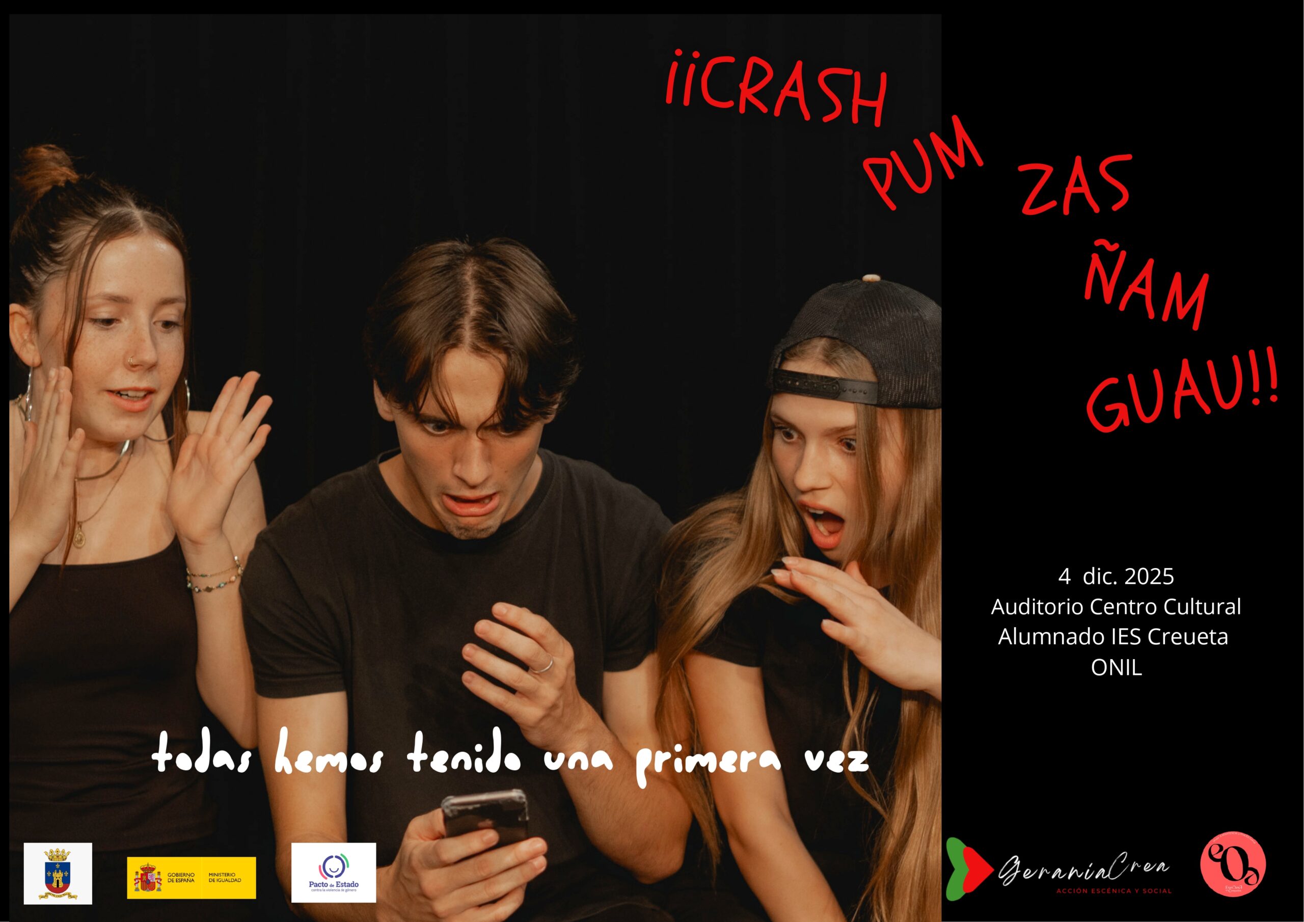 La obra, titulada «Crash Pum Zas Ñam Guau», es una propuesta escénica innovadora que invita a la reflexión y promueve el empoderamiento juvenil en torno a cuestiones esenciales como el consentimiento, el autocuidado y las relaciones afectivas saludables.