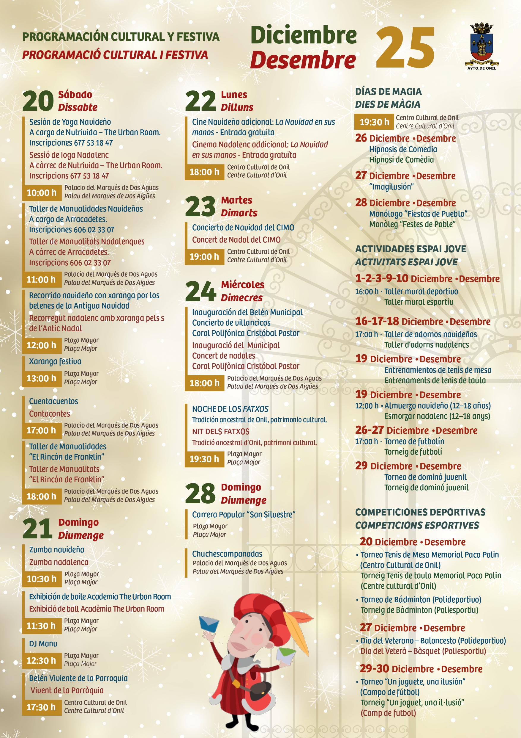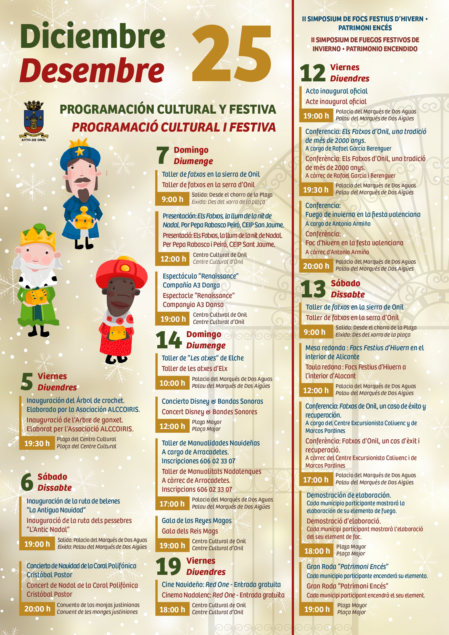 El Ayuntamiento de Onil presenta el calendario de actividades culturales y festivas para el mes de diciembre